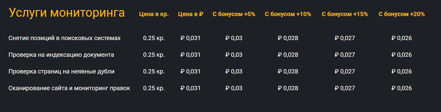 - Чем больше ключевых слов и частота обновлений, тем выше итоговая стоимость.