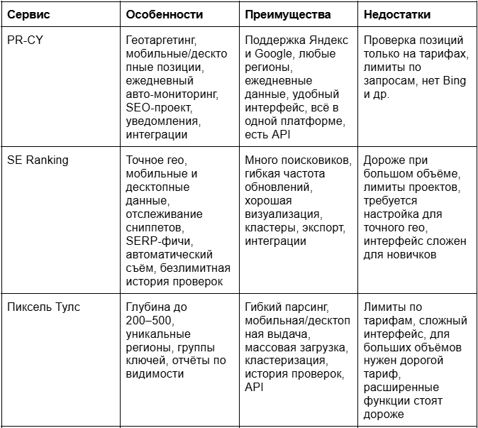 Если же нужен глубокий анализ, регулярная проверка новых запросов, возможность сравнивать результаты с другими сайтами или выгружать данные, то стоит обратить внимание на платные инструменты. Они обеспечивают более широкие возможности и подходят для детальной работы с поисковой выдачей.