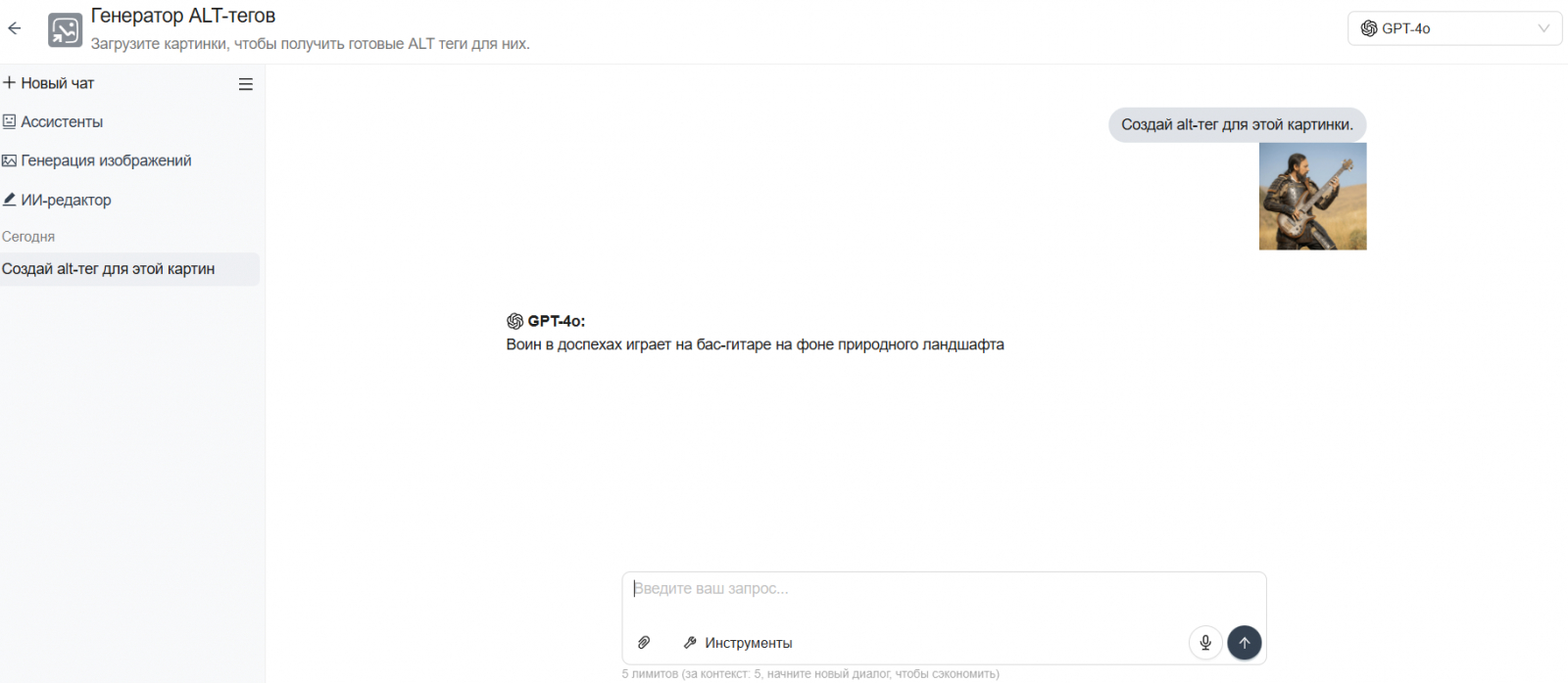 Чтобы упростить работу, можно воспользоваться генератором alt-тегов. Загрузите изображение, и алгоритм на основе нейросетей предложит варианты описания.