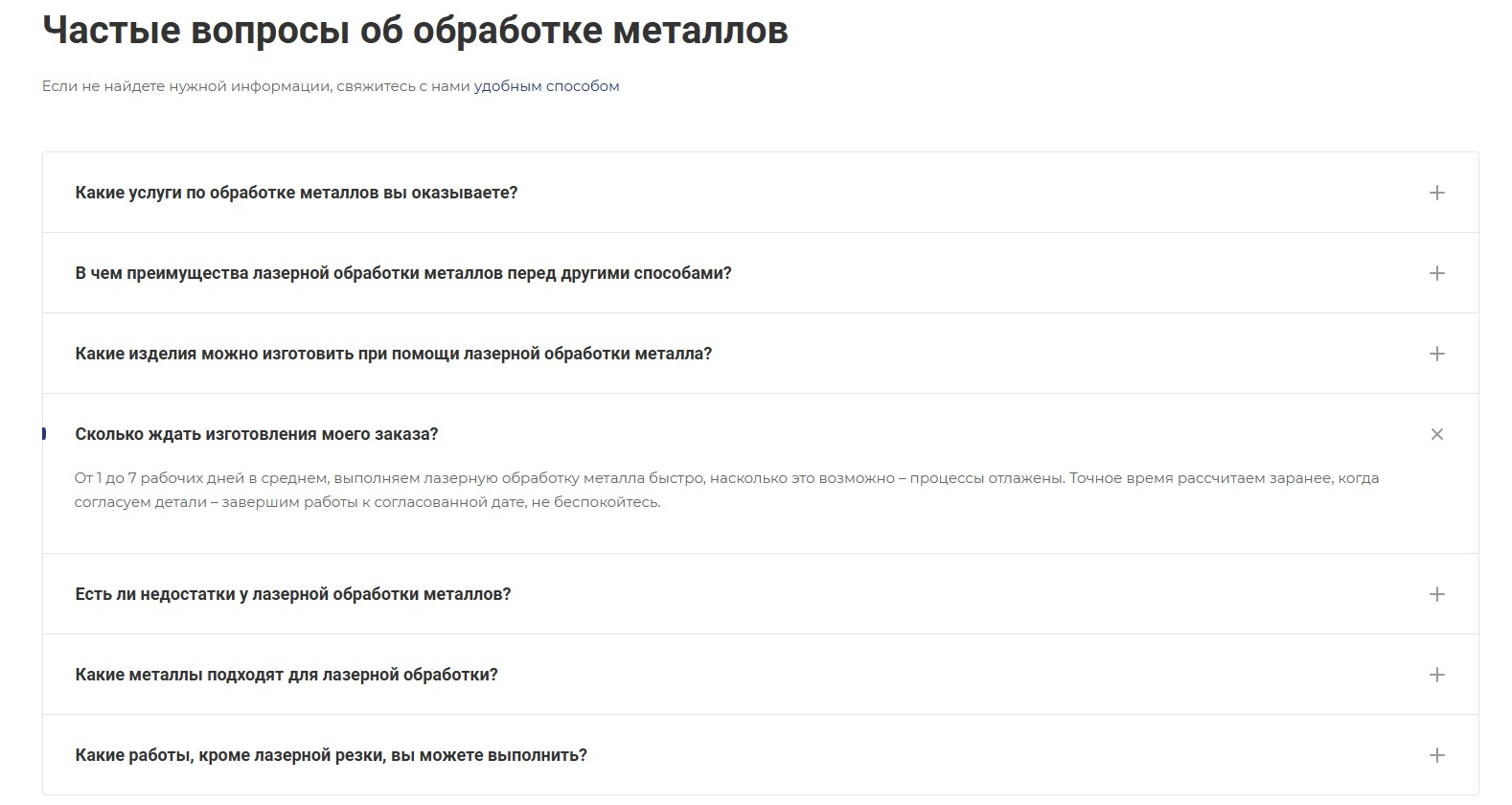 FAQ подойдет для любого бизнеса — ведь у клиентов всегда есть вопросы. Главное, нужно правильно использовать эту информацию — не просто перечислить списком пару вопросов, а подумать и составить полноценный блок с хорошими и понятными ответами.