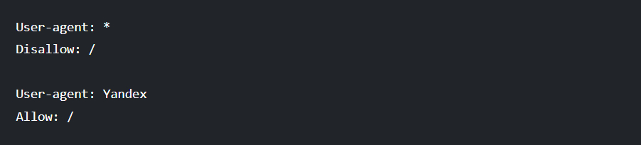 Вот пример того, как запретить сканирование сайта всем основным роботам, кроме Яндекса: