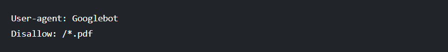 С помощью символа * можно указать все ссылки, содержащие определенные слова или форматы файлов. Например, так мы заблокируем для Google сканирование всех pdf на нашем сервере: