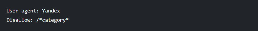 А так мы исключим из сканирования в Яндексе все, что содержит слово category: