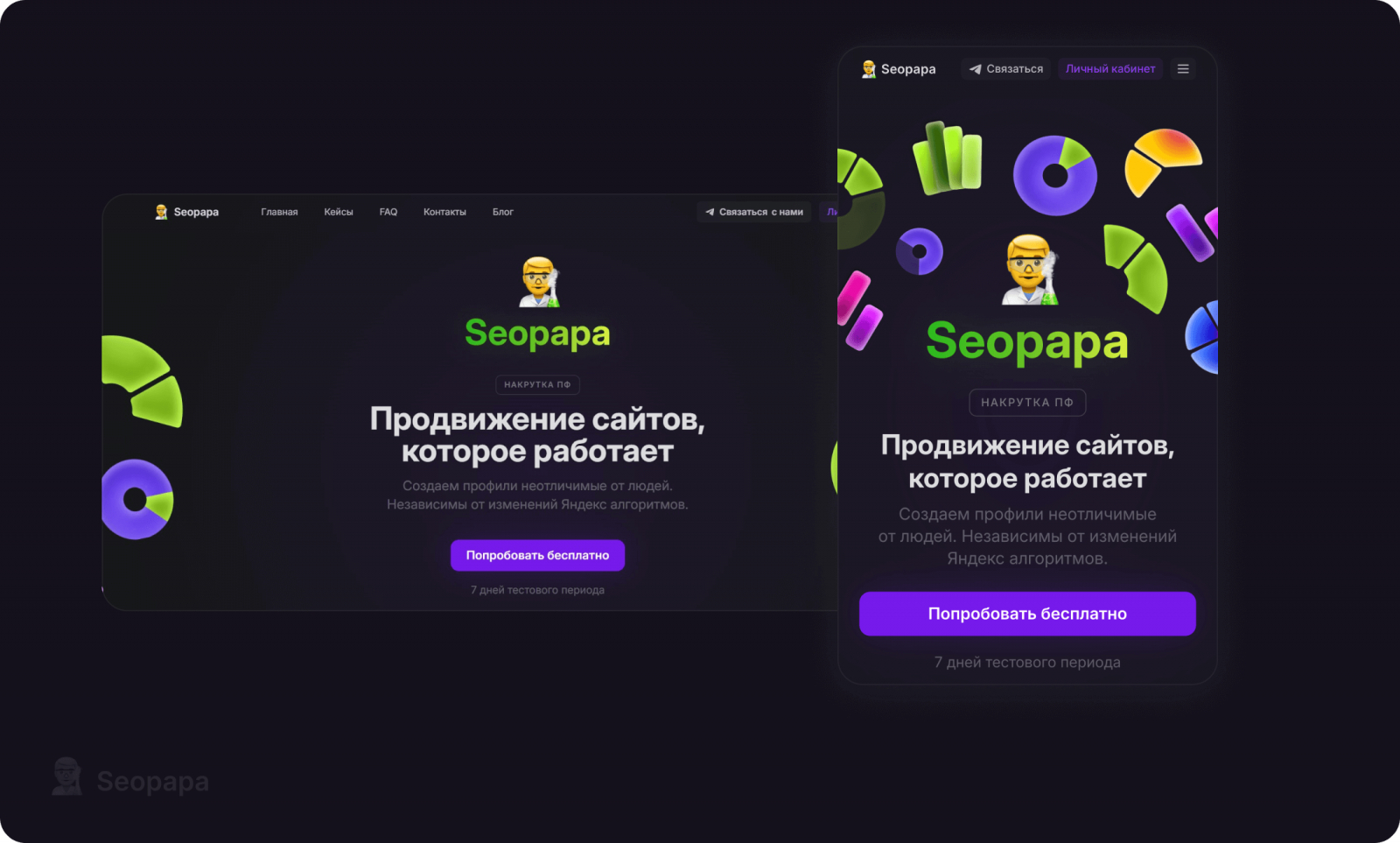 Такой подход не вызывает подозрений у алгоритмов и помогает ускорить продвижение. На сайте Seopapa можно посмотреть кейсы и протестировать систему бесплатно 7 дней.