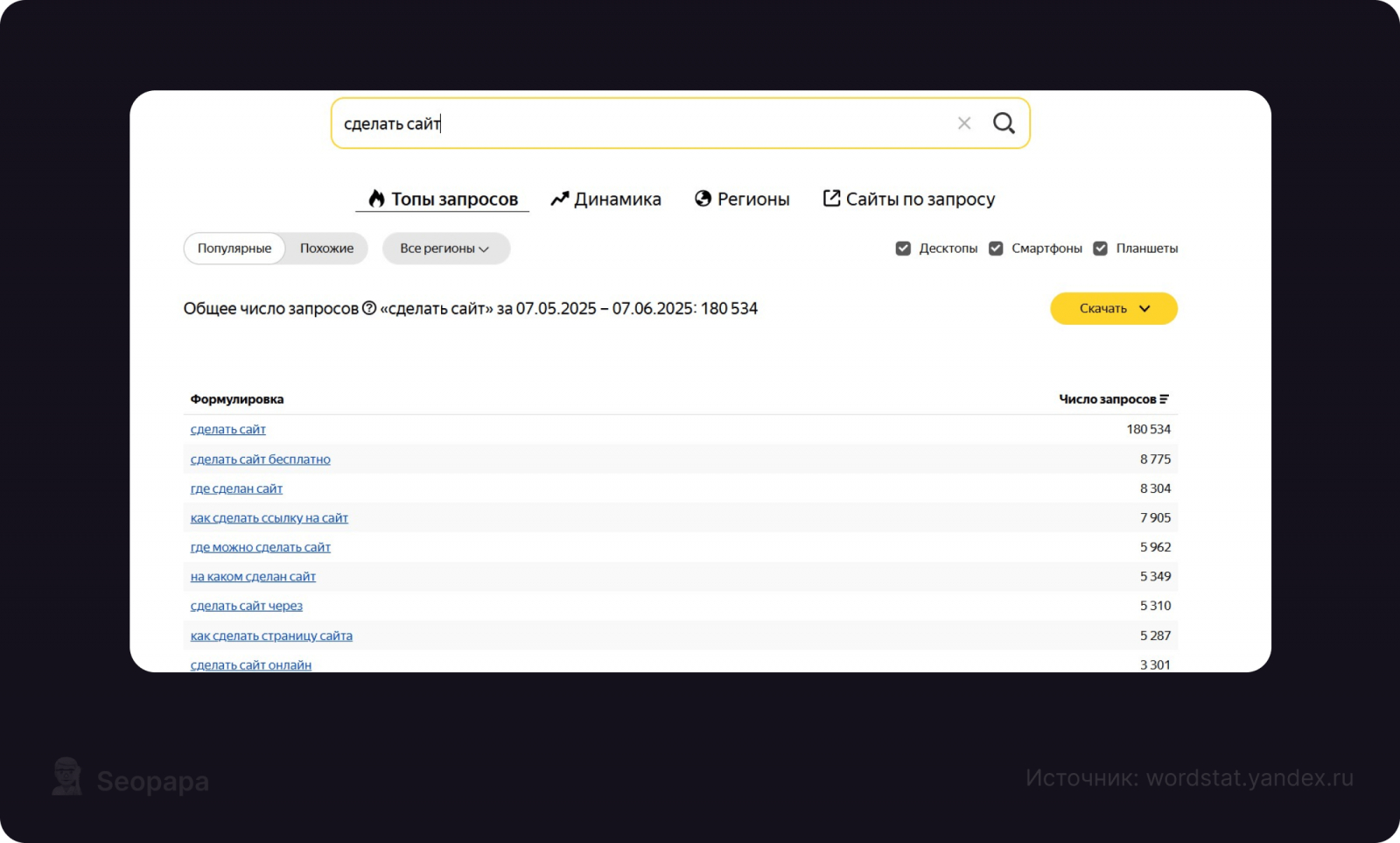 Позиции → трафик → заявки → продажи. SEO — фундамент стабильного роста бизнеса.