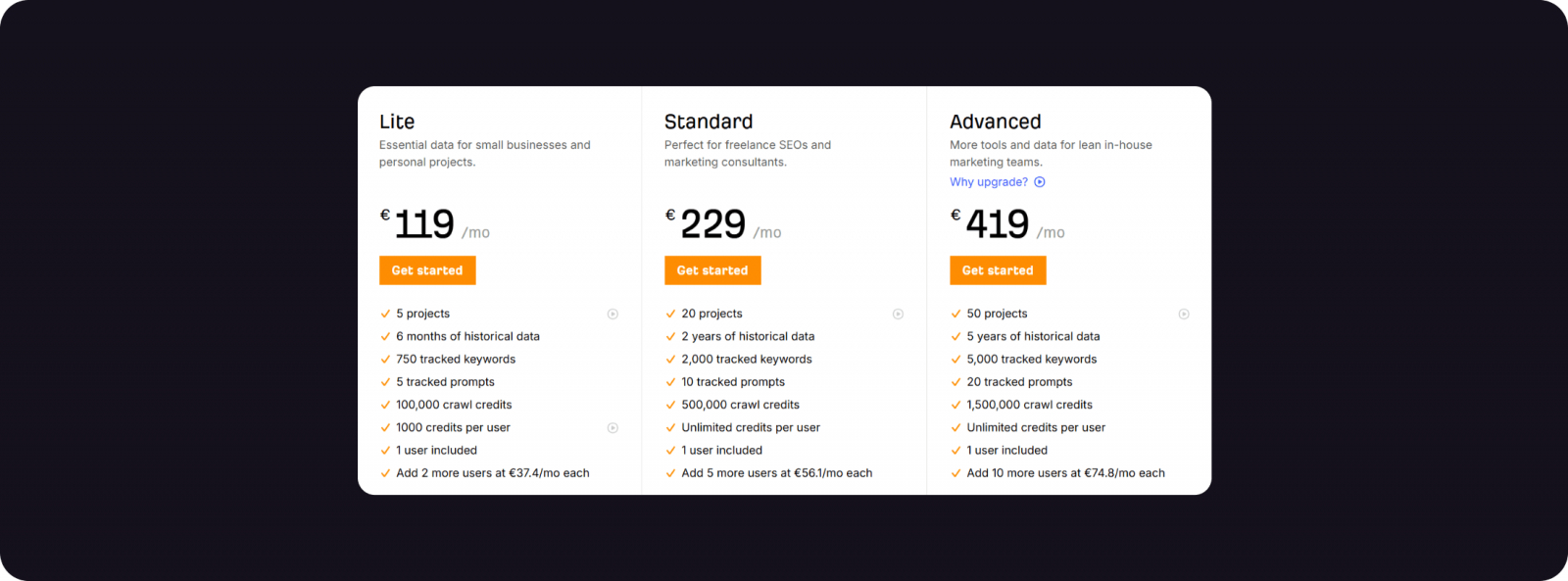 Стартовый план стоит от $139 в месяц — для фрилансера это может быть дорого. Кроме того, база поисковых запросов по Яндексу меньше, чем по Google, поэтому для SEO продвижения исключительно в российском поиске результаты могут быть неполными.