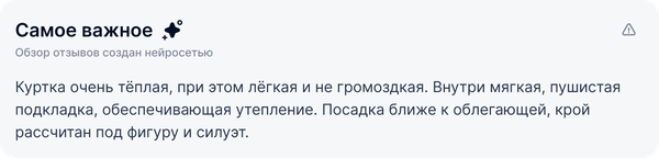 Добавьте на сайт AI-суммаризацию. ИИ покажет ключевые моменты из отзывов и клиенты будут меньше сомневаться насчёт заказа.
