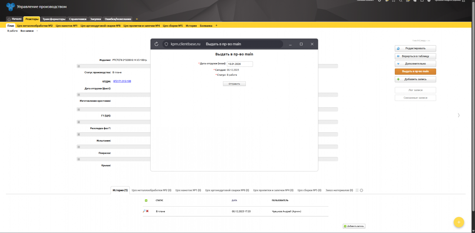 Часто, когда говорят «no-code конструктор», люди представляют себе простенькую CRM для учёта клиентов уровня не сложнее Google Forms. Андрей ломает этот стереотип на раз. Его главный кейс — автоматизация завода «КПМ», производителя высоковольтных реакторов и трансформаторов. Это сложнейшие изделия, сборка которых растягивается на цепочку из девяти разных цехов.