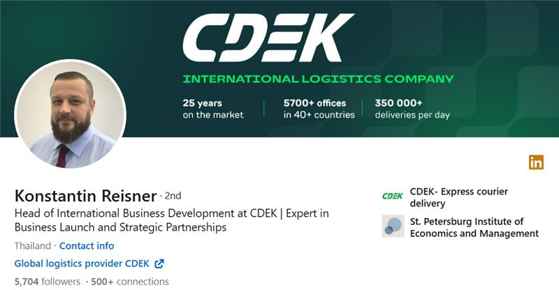 Мы работаем с профилями Константина Рейснера, руководителя группы международного развития CDEK, уже более четырех лет. Наш проект сосредоточен на поиске партнеров, заинтересованных в запуске собственного логистического бизнеса по франшизе компании. За время сотрудничества мы привлекли в профили Константина 10 620 представителей целевой аудитории, а также 254 лида, которые обсудили условия покупки франшизы на звонках и встречах.
