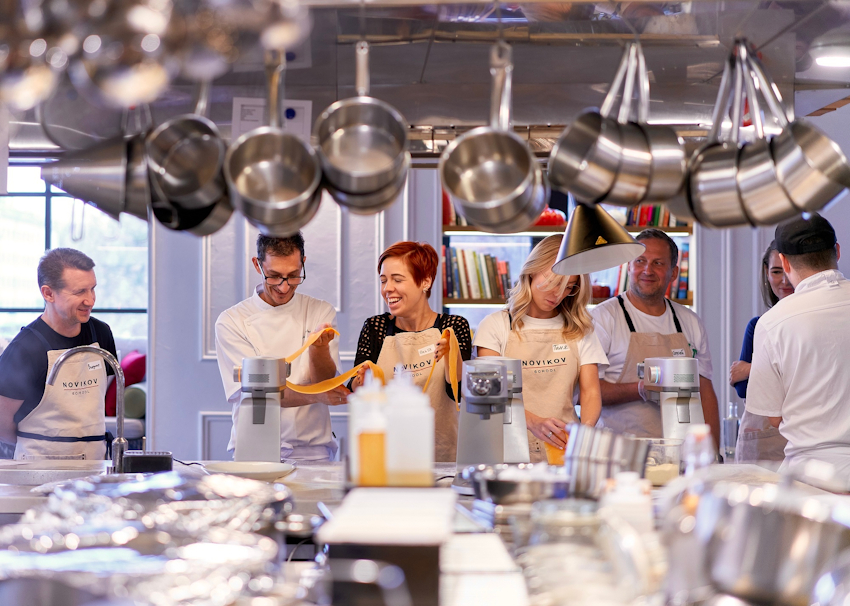 А Аркадий Новиков давно мечтал об офлайн-школе, где каждый мог бы учиться кулинарному мастерству у настоящих профессионалов. Когда эти две идеи встретились, родилось нечто большее: в 2016 году открылась CHEFSHOWS by Novikov (позже — Novikov School). Онлайн-платформа соединилась с живой школой, предприимчивость Юлии и ее связи с лучшими шефами — с масштабом мышления Аркадия и его влиянием в индустрии.