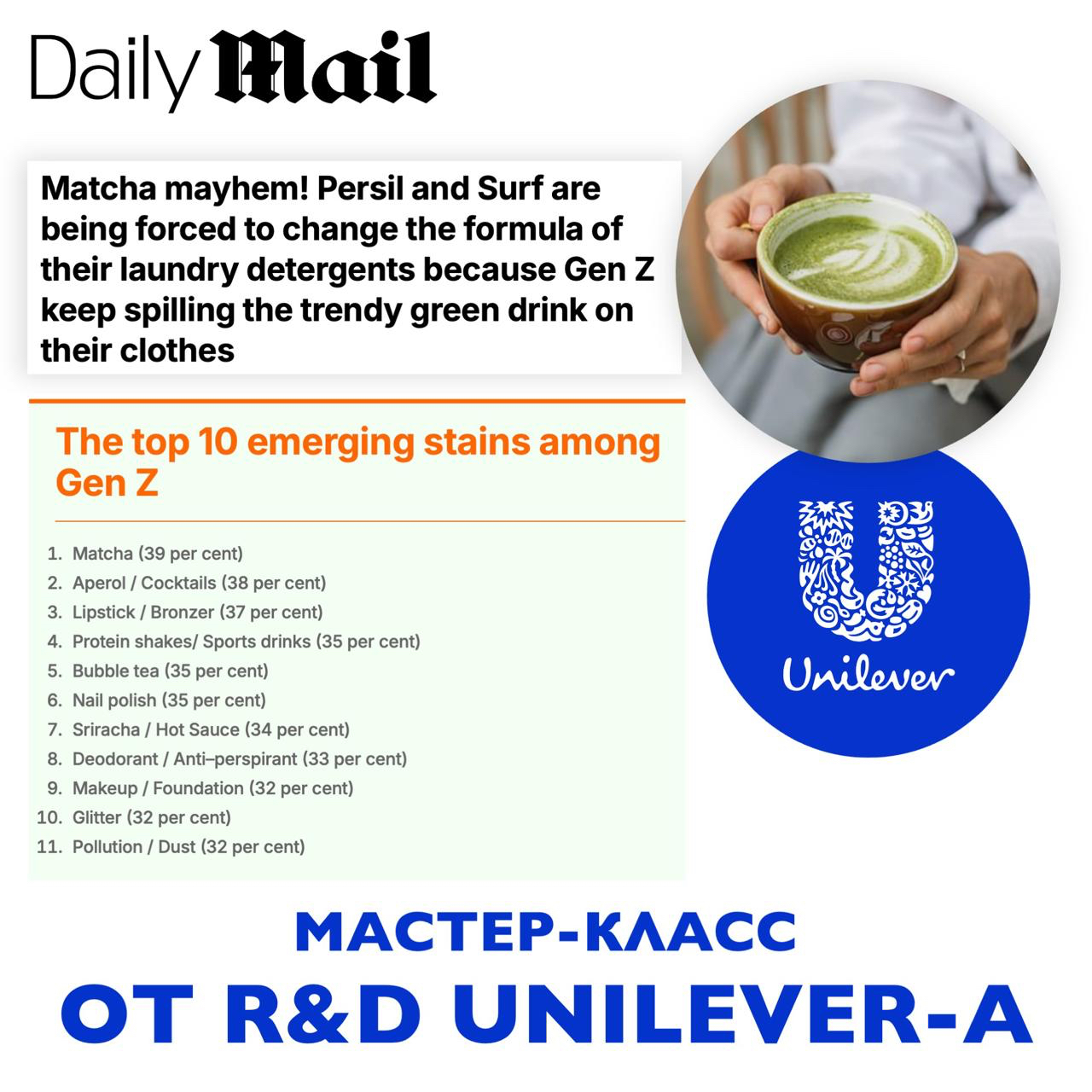 Их R&D отдел выпускает исследование о том, какие пятна стали сейчас самыми «популярными» и как меняется рецептура Persil для того, чтобы адаптироваться под «пятна поколения Z».