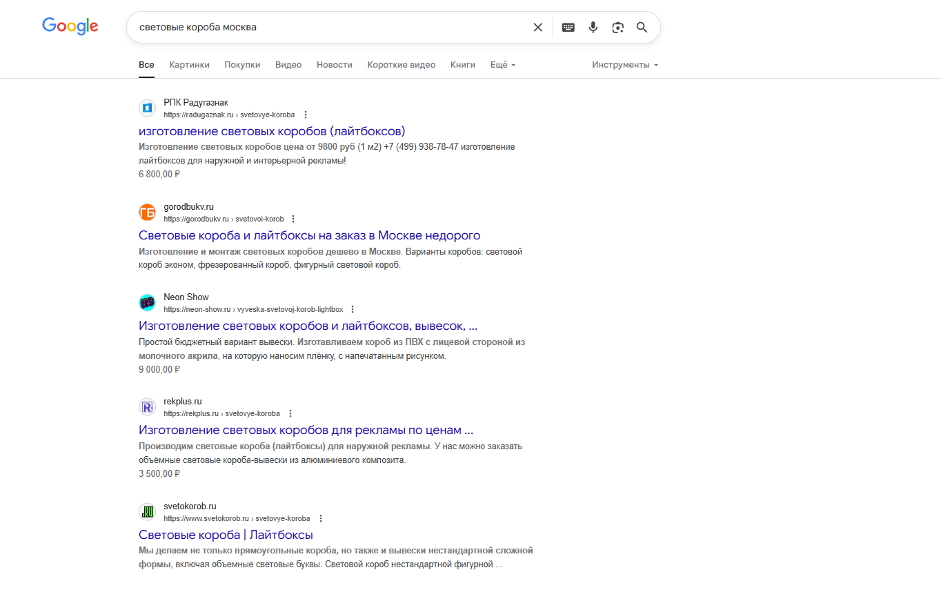 Поисковая выдача показывает не только, что делают на сайтах конкуренты, но и что, а также в каких формулировках ищут пользователи. А они часто «гуглят» конкретику. Именно поэтому вместо одной страницы про световые панели вам, вероятно, нужно сразу три: фреймлайты, кристалайты и акрилайты.