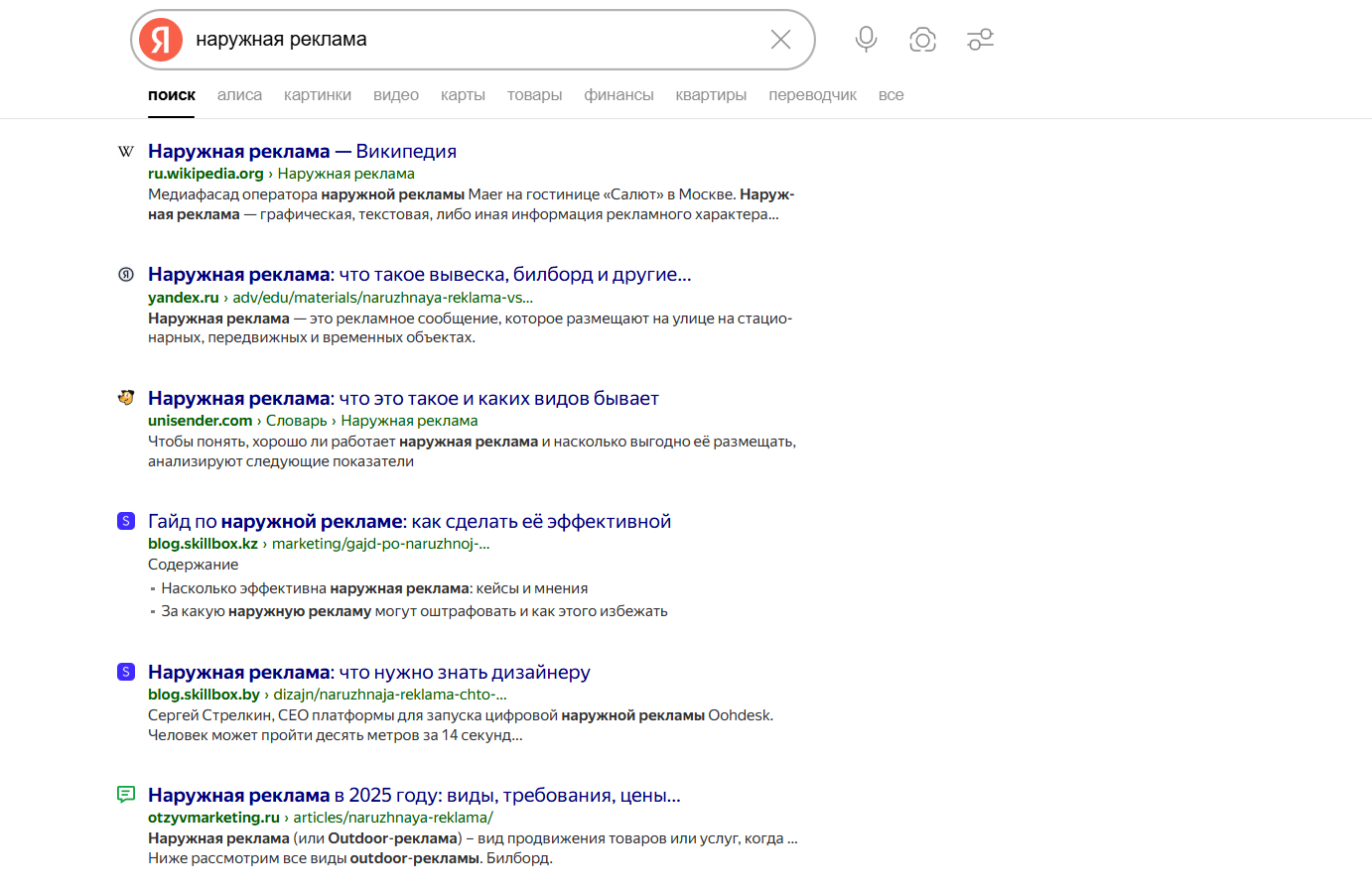Большинство компаний совершают классическую ошибку новичков в SEO — бросают все силы на то, чтобы выйти в топ выдачи по высокочастотным запросам типа «наружная реклама». Но во-первых, по ним очень большая конкуренция. А значит, нужно очень много инвестировать в поисковое продвижение для сохранения хороших позиций. Во-вторых, эти запросы на практике не всегда целевые. Так, по запросу «наружная реклама» информацию может искать и студент для курсовой работы, и журналист для статьи.