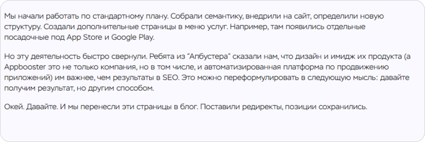 Во многих кейсах авторы ограничиваются перечислением действий: «запустили кампанию, оптимизировали бюджет, собрали семантику». Это похоже на список задач из трекера: информативно, но не раскрывает, что стояло за решениями. Читателю важно увидеть не последовательность шагов, а логику: почему вы пошли именно этим путем, какие гипотезы проверяли и что повлияло на итоговый результат.