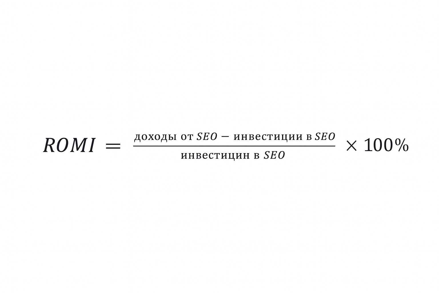 ROMI (Return on Marketing Investment) — показатель, который помогает оценить рентабельность вложений в маркетинг. В SEO-контексте ROMI показывает эффективность инвестиций, направленных на улучшение трафика и видимости сайта в поисковиках и, как следствие, на увеличение конверсий.
