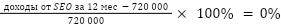 Итак, затраты на SEO в этом месяце составили у агентства те самые 50 000 ₽. К ним добавим еще 10 000 ₽ на ссылочное продвижение и копирайтинг. Теперь, зная доходы и расходы, мы можем посчитать ROMI по маржинальной прибыли: