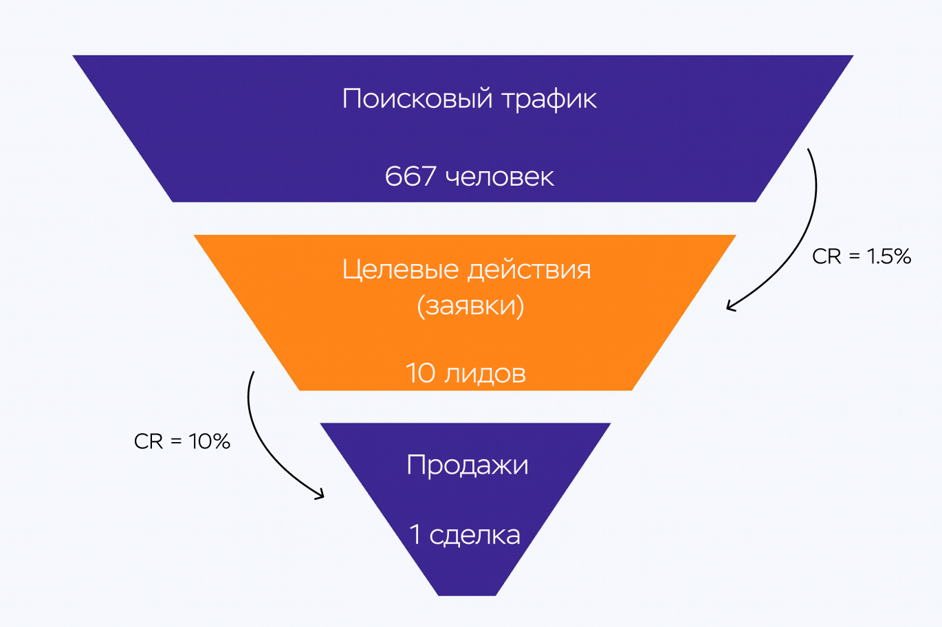 Чтобы получить одну сделку при конверсии в клиента 10%, нужно минимум 10 лидов в месяц, то есть: