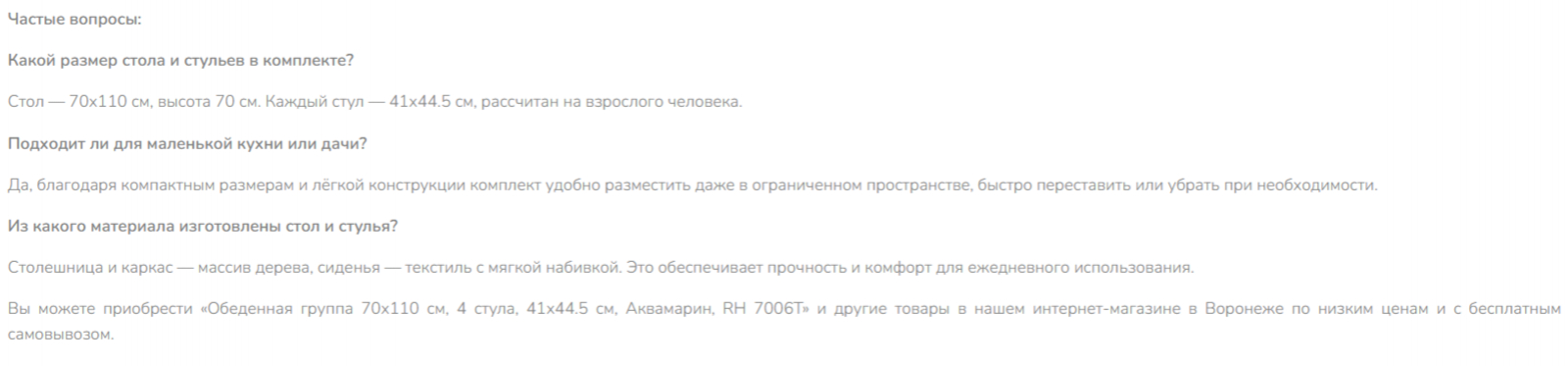 В описании важно предусмотреть и те вопросы, которые человек не задает вслух, но из-за которых может отложить покупку. Небольшой блок FAQ внутри карточки снимает сомнения лучше любого рекламного абзаца. Подойдет ли крем для кожи, склонной к акне, как материал сумки ведет себя в мороз, совместимы ли наушники ли с iPhone, что делать, если размер куртки не подошел. Такие вопросы вряд ли ищут отдельно, но именно они часто становятся причиной отказа.