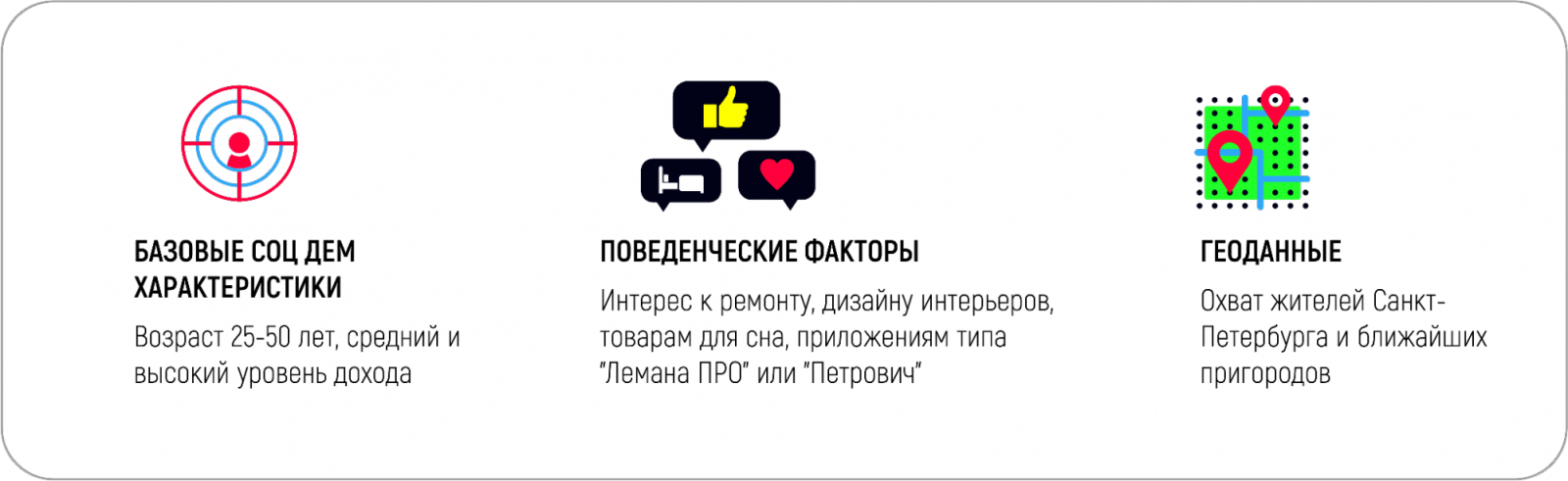 Особое внимание уделили точности таргетинга. Аудитория формировалась по трем ключевым параметрам: