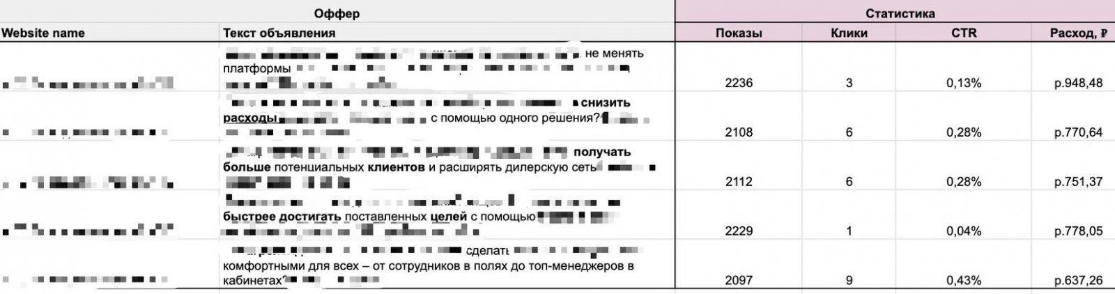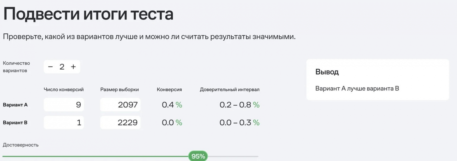 Почти за 5 лет работы в российской B2B ИТ-компании мы с коллегами протестировали более 500 трафиковых и продуктовых гипотез с помощью такого подхода. И бюджет на тест редко превышал 10 000-15 000 рублей. Такой уж бенчмарк мы себе поставили.