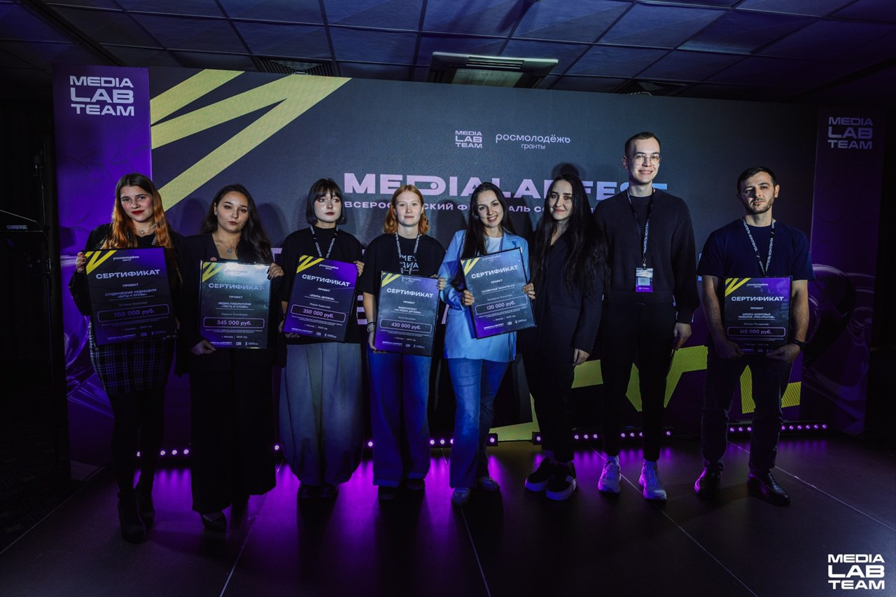 По итогам были определены 6 победителей публичных защит, общий рекомендованный фонд в рамках конкурса Росмолодёжь.Гранты на площадке MEDIALABFEST составил 2560000 рублей: