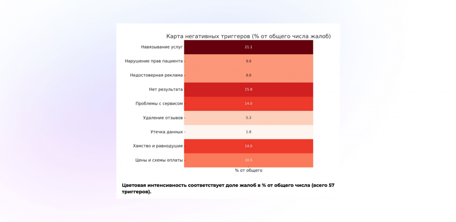 Та же часть негативных отзывов которая исходила от реальных клиентов клиники в основном была направлена не на врачей или сервис клиники, а на некорректную рекламу. Маркетологи клиники, пытаясь привлечь больше клиентов, переборщили с креативом: пообещали “суперакцию”, которая в реальности действовала не так, как ожидал человек. В итоге пациенты чувствовали себя обманутыми — и шли писать гневные отзывы.