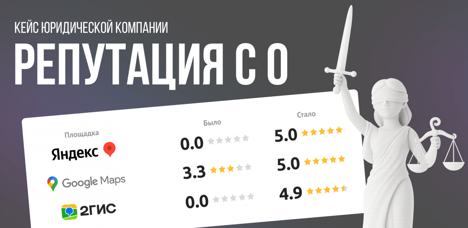 Наш клиент начал с 0, а через полгода получил рейтинг 4,9, положительную тональность в поиске и стабильно растущий поток клиентов.