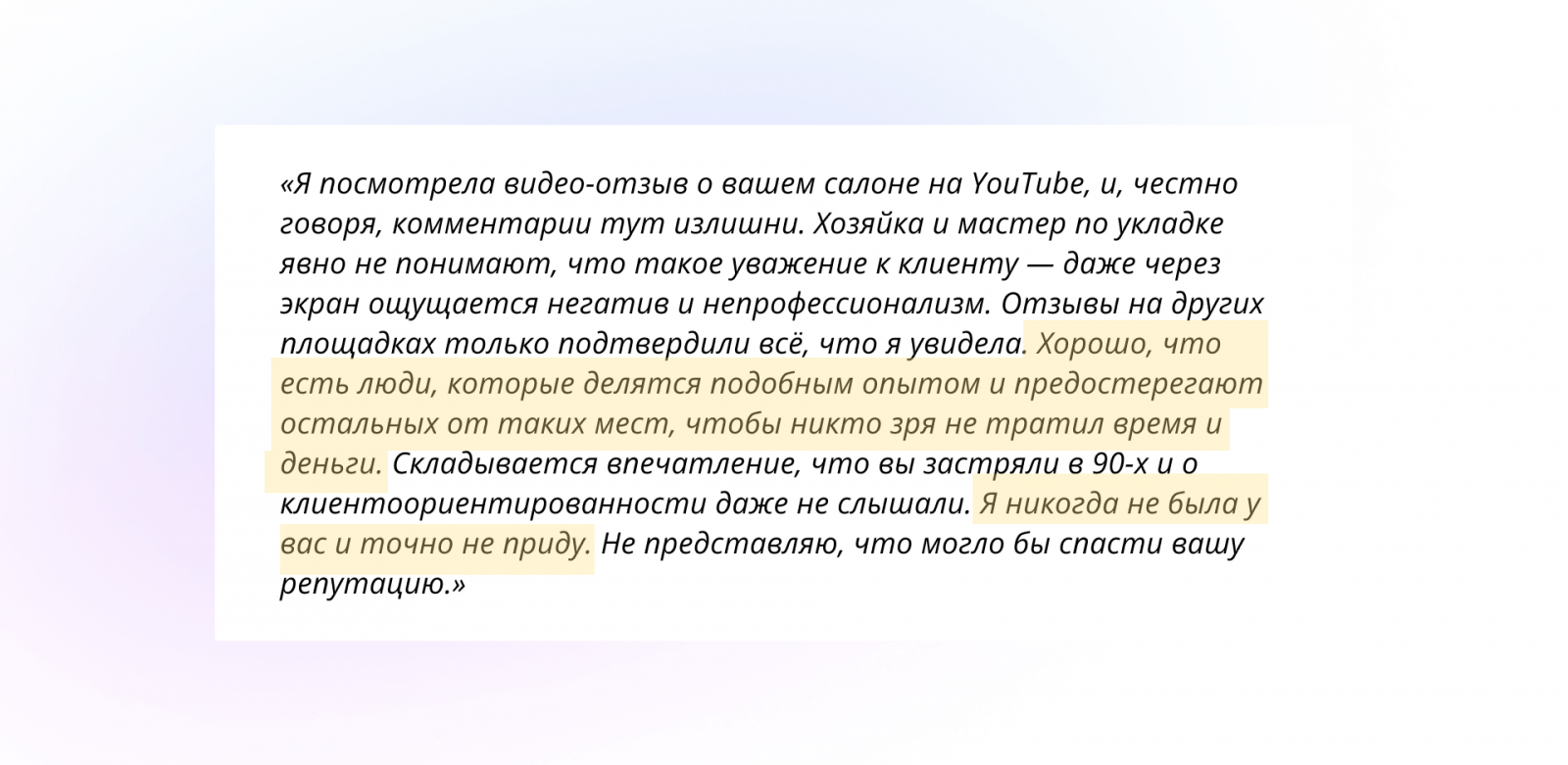 Если инфлюенсер рассказывает, что его «обманули» или «разочаровали», его слова мгновенно запускают цепную реакцию. Подписчики начинают делиться историей, писать гневные комментарии, ставить низкие оценки на картах и в поисковиках — даже не имея личного опыта взаимодействия с брендом.