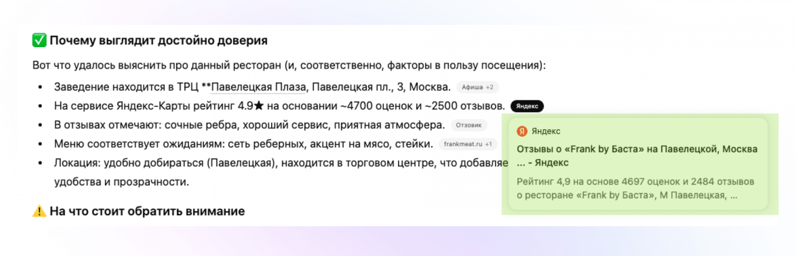 Сегодня Алиса, ChatGPT и другие умные помощники становятся настоящими рекомендателями. Они советуют, куда идти и каким брендам доверять. А источником для этих рекомендаций служат именно поисковая выдача и базы с отзывами. Поэтому работа с репутацией уже выходит за рамки маркетинга — она становится частью экосистемы искусственного интеллекта и GEO-продвижения.
