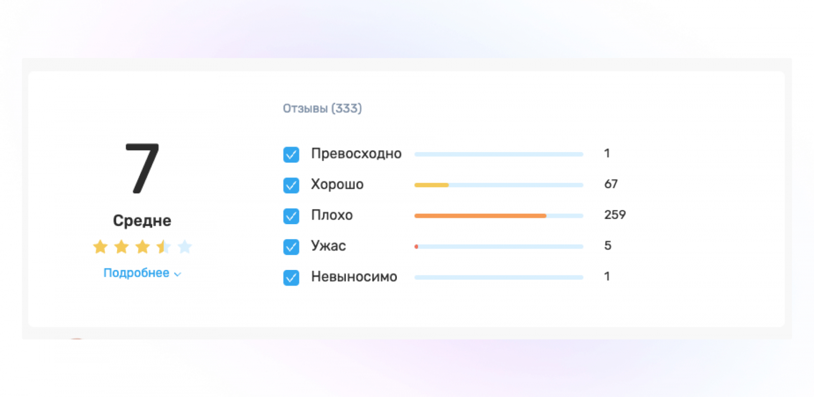 Второй важный момент — отзывы на таких площадках публикуются от любых авторов, без модерации или проверки. И в основном это негативные отзывы.