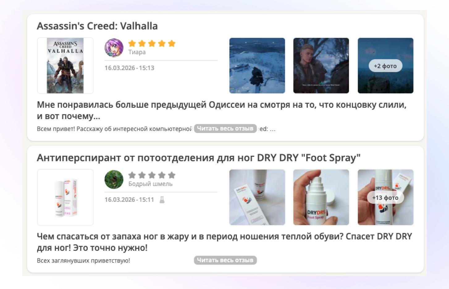 Важный нюанс: модерация на iRecommend работает неравномерно. Нейтральные и негативные отзывы проходят быстро. С положительными — сложнее. Площадка по умолчанию считает их потенциально заказными, поэтому требует подтверждение: фото, чек о покупке или другой документ. Без этого отзыв либо завернут, либо в личном кабинете появится пометка «заказной/рекламный».