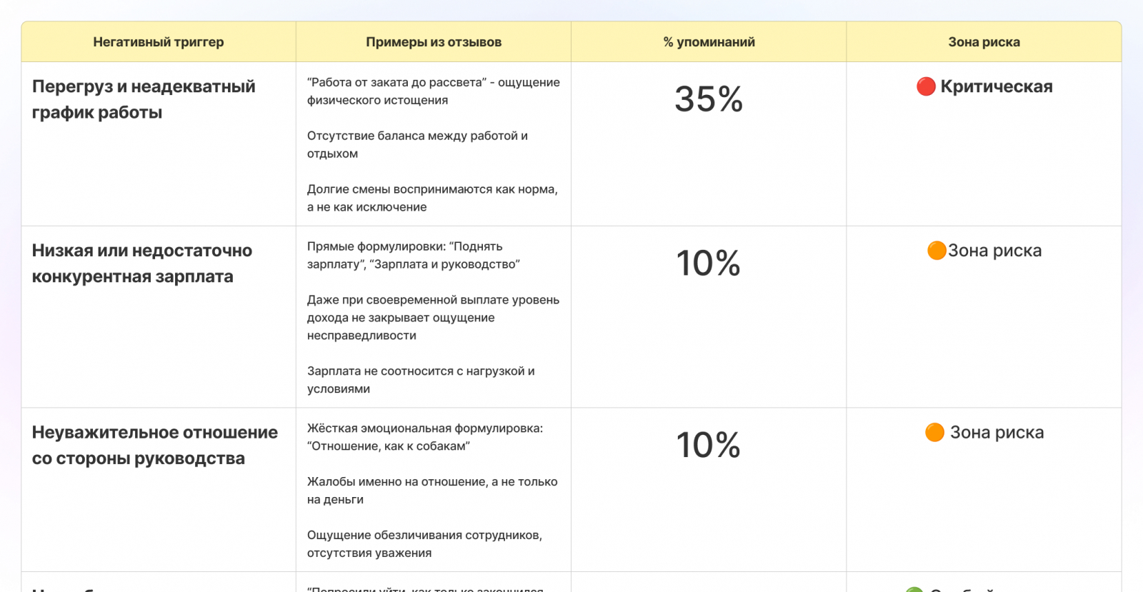 «Самый простой способ построить карту негативных триггеров — попросить ИИ проанализировать все ваши отзывы и выделить, за что вас чаще всего ругают и за что чаще всего хвалят сотрудники.»