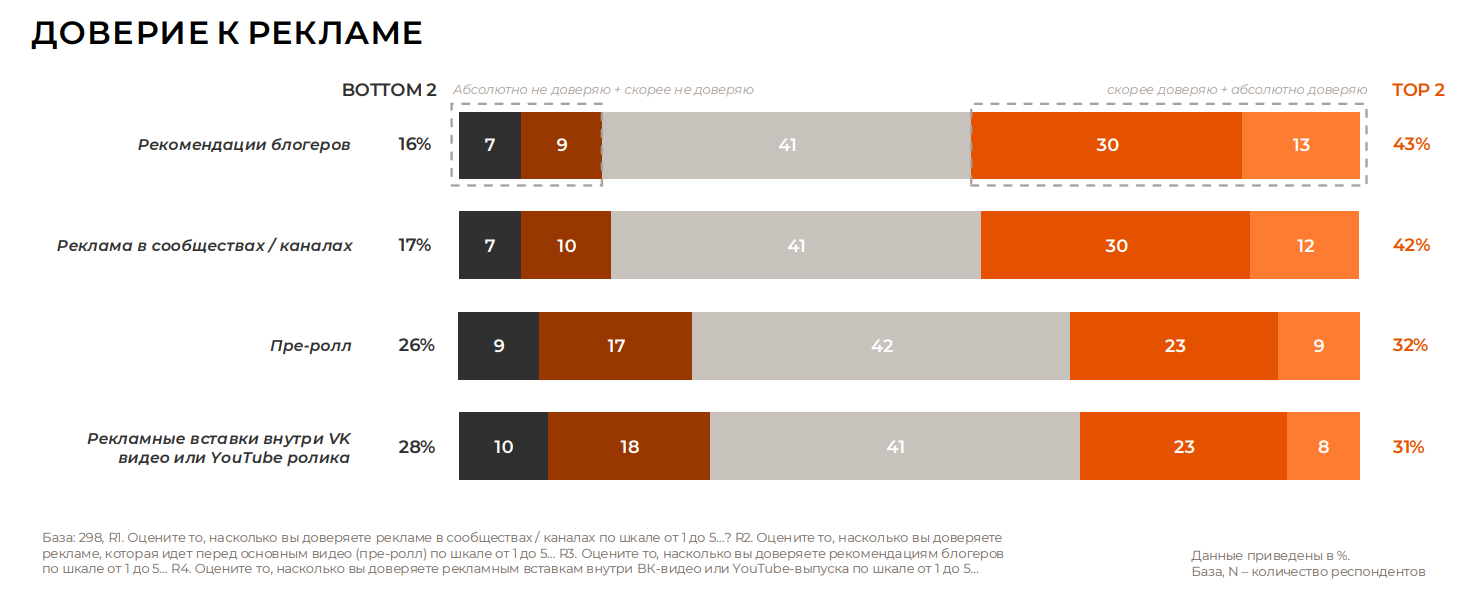 При этом, из рекламных форматов наибольшее доверие у подростков всё еще занимают рекомендации блогеров. А вот к пре-роллам перед видео или рекламным вставкам внутри роликов поколение альфа относится хуже. Что касается традиционных и любимых многими компаниями текстовых форматов — подростки и вовсе их не замечают.