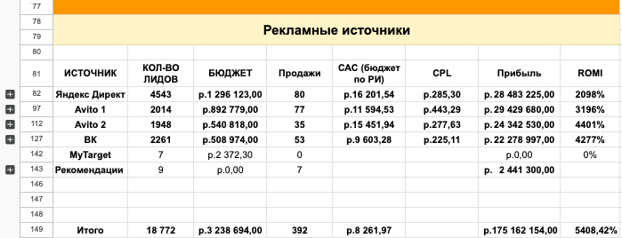 Свою деятельность запустили с 2020 года. По этому среднее кол-во сделок было не более 10 на отдел продаж, по этому собственник компании также активно участвовал в продажах, чтобы выполнять планы продаж и не попасть в кассовый разрыв.
