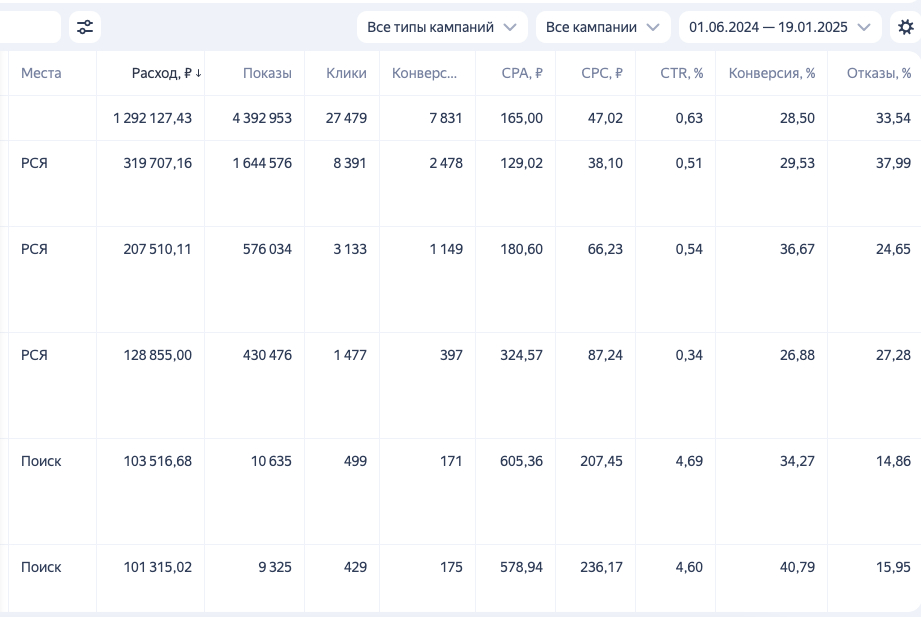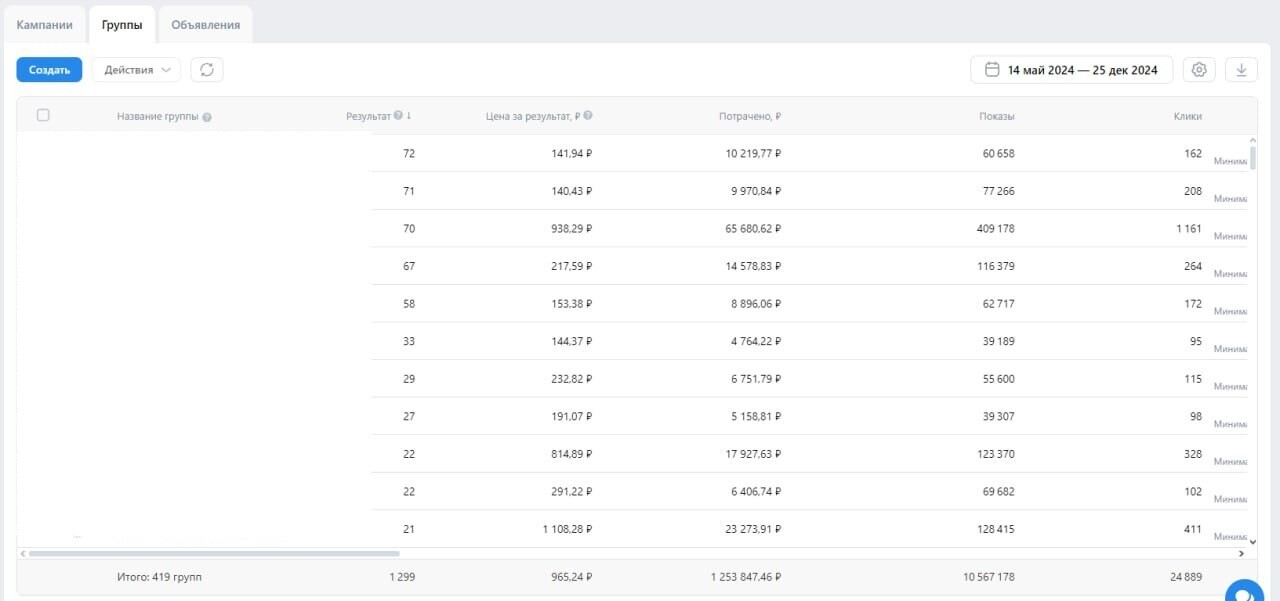 - недостаточно прямого, горячего трафика, который при увеличении дневных бюджетов до 20-25 тр выгорает за 2-3 дня