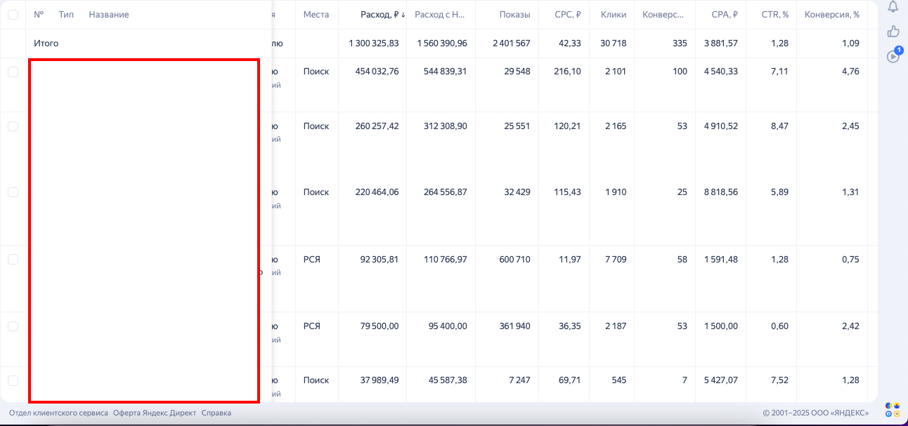Компания имеет достаточно хорошие показатели по LTV обращениям. Поэтому перед нами стояла основная задача - это привести наибольшее количество новых клиентов, выкупая весь поисковый трафик с яндекса.