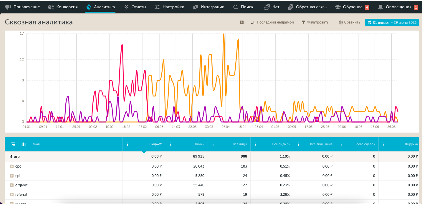 - Рассчитали реальное количество и стоимость входящих лидов в компанию по яндекс метрике и срм системе