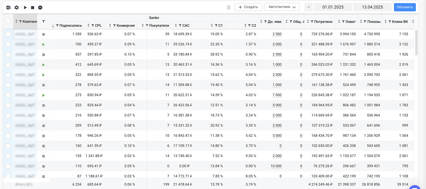 Для удобства в работе c рекламным кабинетом ВК, был подключен Loktar, где как раз и измеряли стоимость клиента (САС)