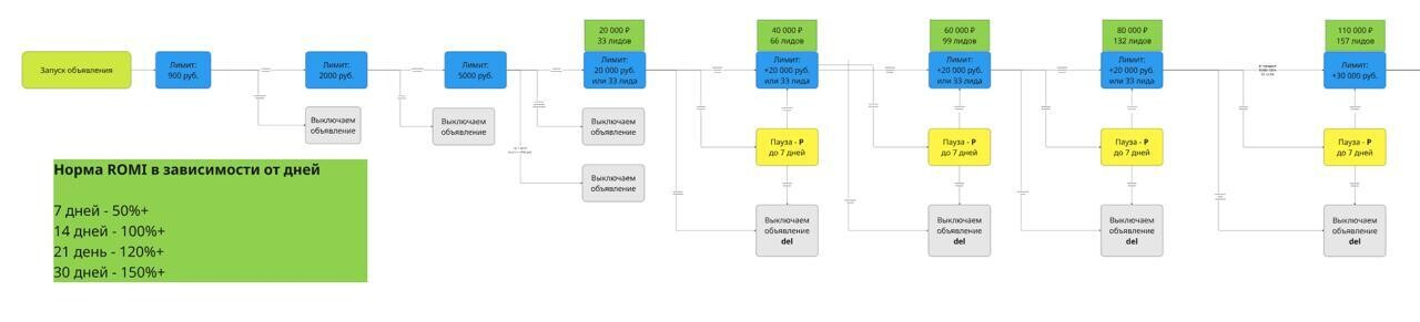 2. Наращивание рекламного бюджета на 15-25% ежемесячно без потери ROMI