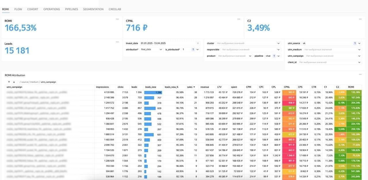 Для эффективности работы и отслеживанию результата у компании была внедрена сквозная аналитика на базе Yandex DataLens.