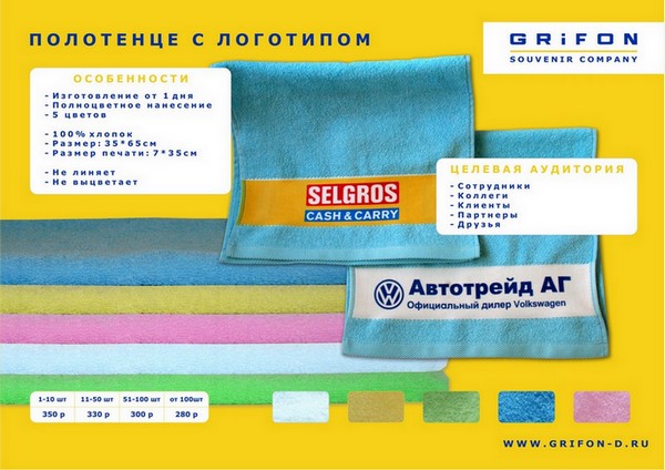 Сувенирное полотенце с логотипом Вашей компании. Тираж изготовление полотенец от 1 штуки, сроки изготовления от 1 дня.