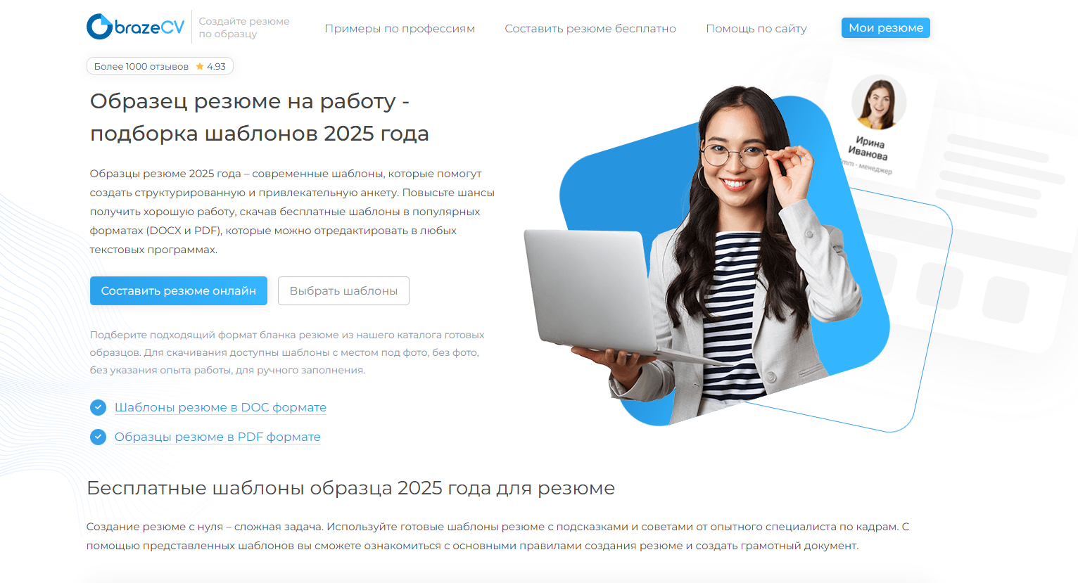 Выбранная анкета всячески настраивается. Кроме того, можно воспользоваться одним из резюме в коллекции сайта. Достаточно подобрать подходящий по профессии вариант и доработать его под свою личность. Готовый бланк скачивают или отправляют по почте в виде ссылки.