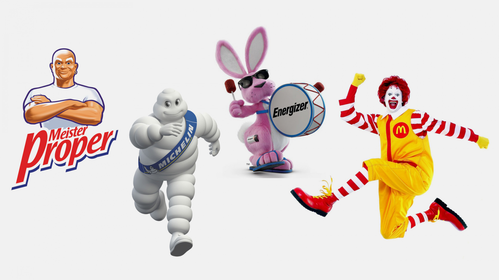 Вы их, без сомнения, знаете. Поэтому не будем в стотысячный раз упоминать какого-нибудь кролика Energizer, Мистера Пропера, Рональда МакДональда и Бибендума Michelin. Они не нуждаются в представлении.