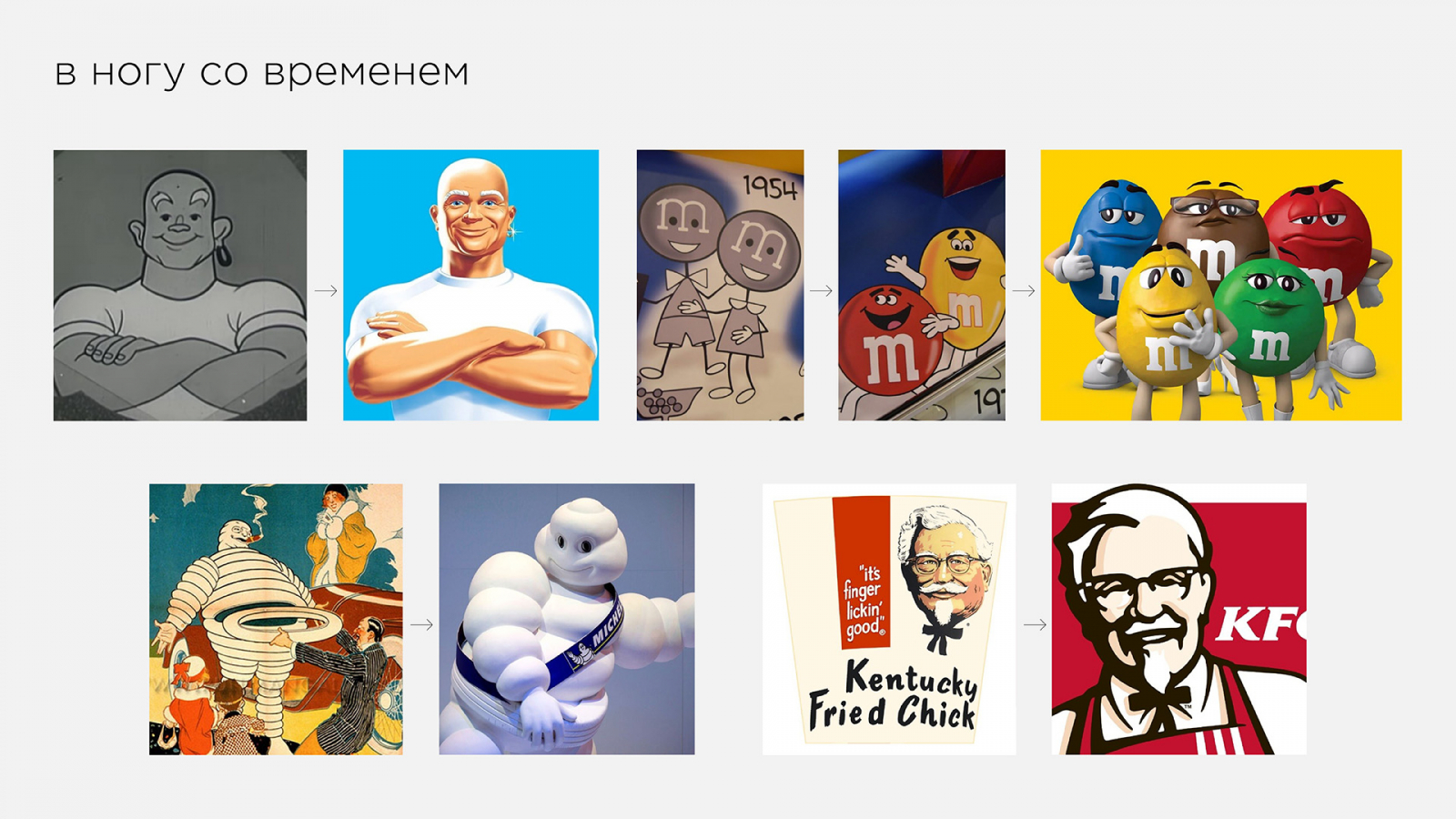 Изменение внешности и поведения бренд-персонажей — подтверждение того, что бренды и их поклонники испытывают к ним взаимную любовь, сживаются с ними и не хотят расставаться (у всех сторон для этого свои причины). При этом персонажи должны расти — оставаясь вечно молодыми.