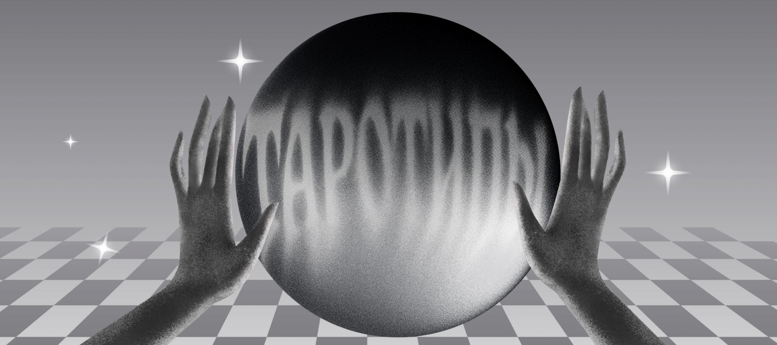 Тонкие графические элементы навигации вдохновлены нашими же иллюстрациями и задают легкий эзотерический тон — смесь мистики, масонства и таро. Главный визуал — шар гадалки — был собран в ИИ: мы подбирали шрифты под визуальное размытие, искали композицию и генерировали финальное изображение вместе с анимацией.