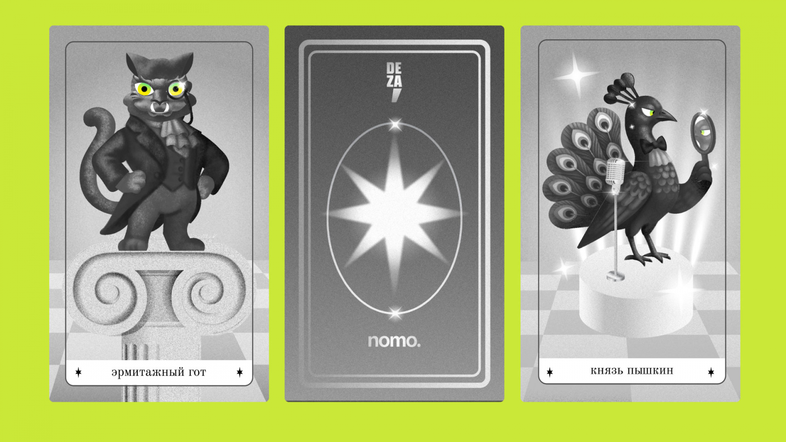 Загадочный мистический вайб Таротипов развивается и в визуале — характерно петербургском, сером и подчеркнуто депрессивном. Но с яркой градиентной ноткой — она используется в качестве акцента, придавая стилю немного дерзости и уместного для картежной темы азартного настроения.