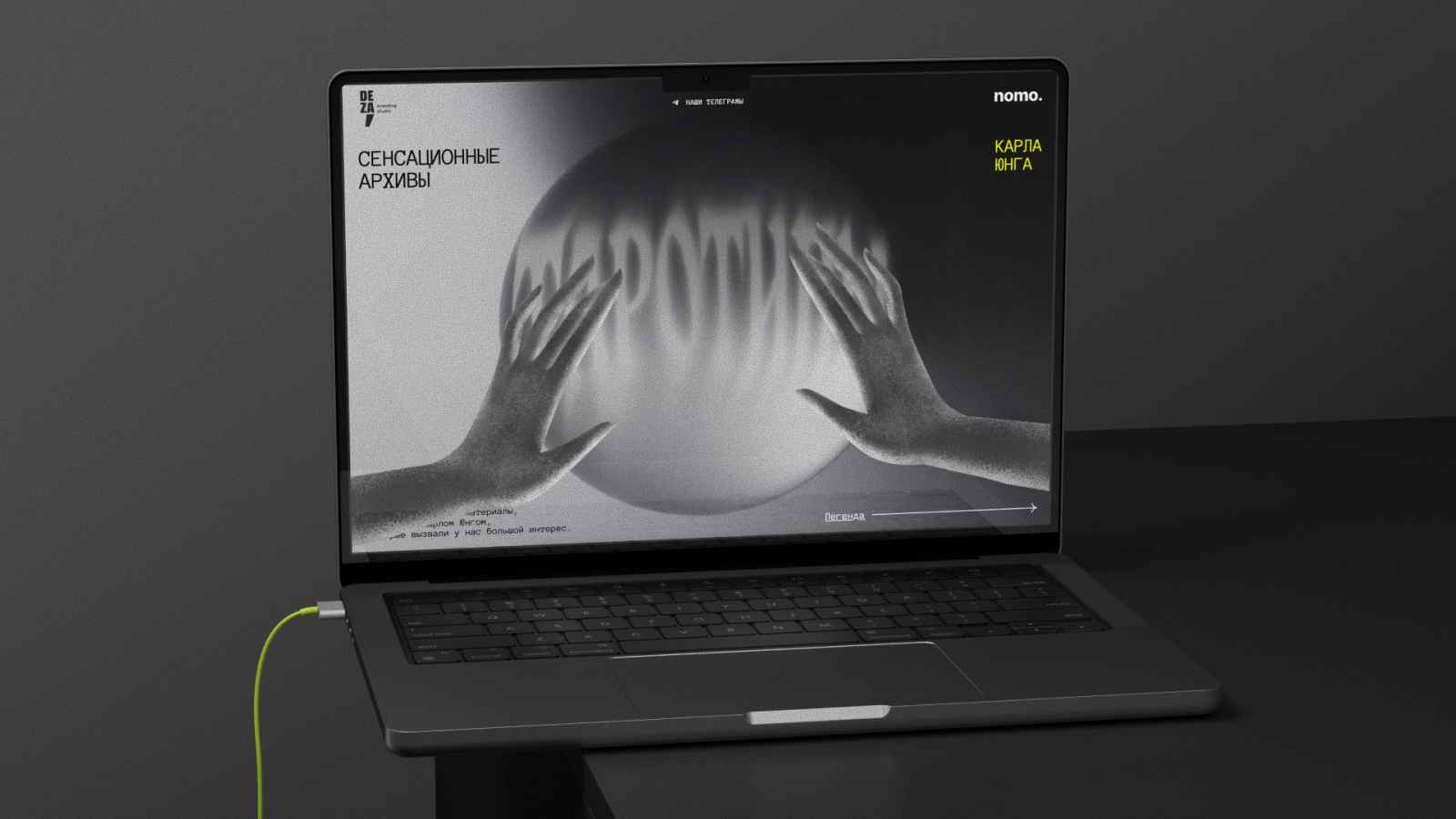 Сайт сверстан на Webflow в zero-code, что позволило быстро собрать сложную механику без потери качества анимаций. Мы задали поэкранный горизонтальный скролл, чтобы создать эффект пролистывания журнала и удерживать внимание пользователя внутри каждой полосы. Такой формат делает навигацию намеренно замедленной и более созерцательной. Тест мы оставили полностью случайным — без вычислений и логики — чтобы иронично подчеркнуть абсурдную природу архетипов как гадания и сохранить игровой элемент.