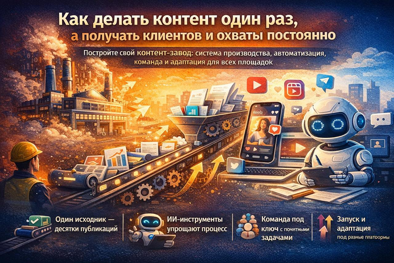 В 2026 году контент-заводы без автоматизации будут проигрывать тем, кто использует ИИ-инструменты. Это не вопрос моды - это вопрос скорости и себестоимости.