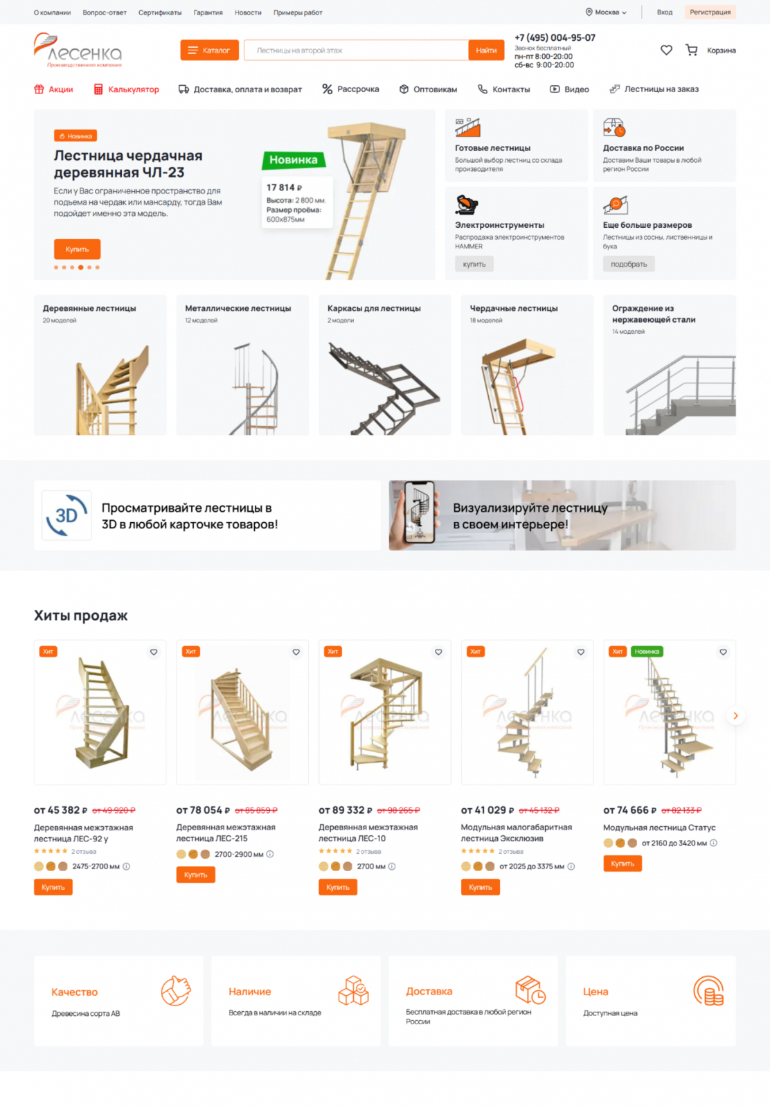 Основное преимущество – собственное производство модульных систем: компактные модели для небольших пространств и конструкторы лестниц, что позволяет собрать изделие под свои размеры.