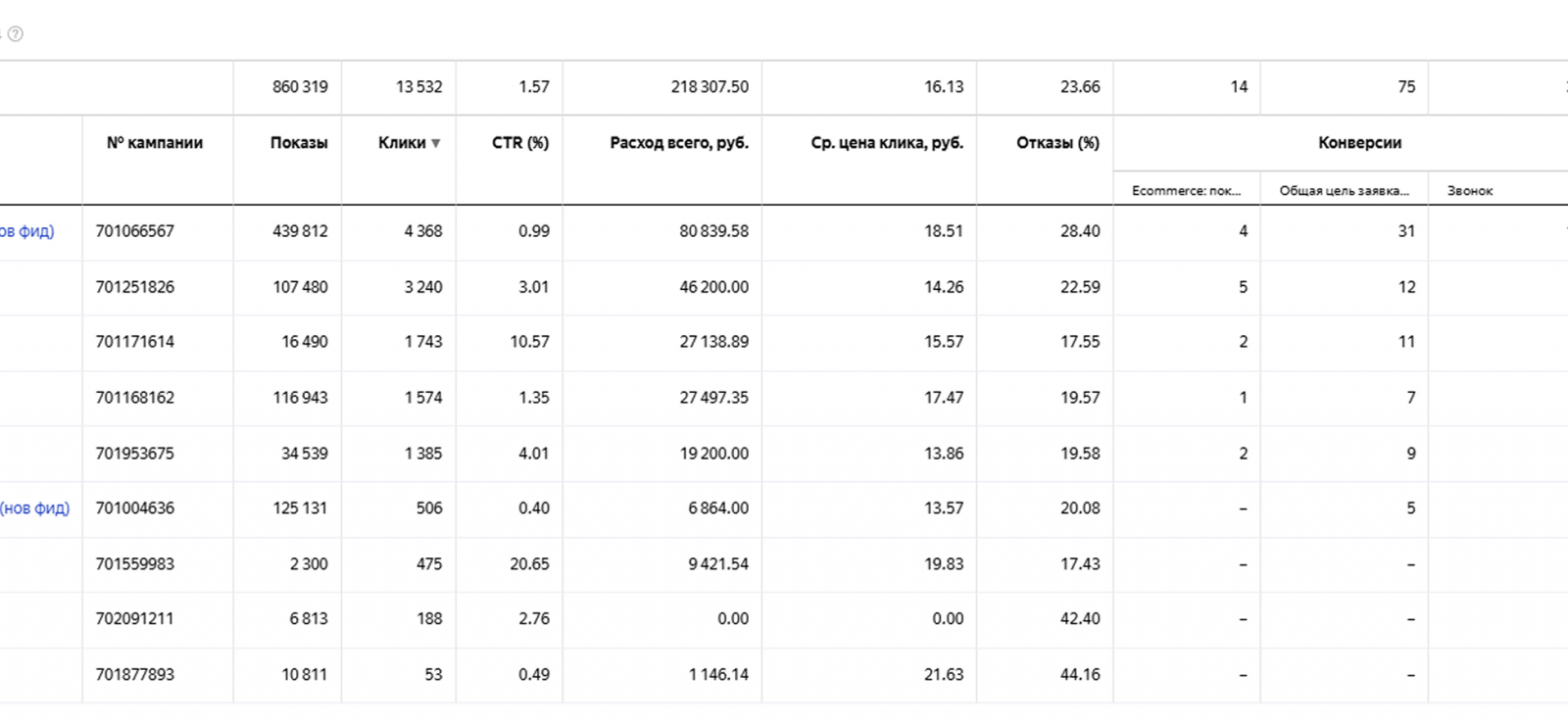 Важно подчеркнуть, что сайт на Битрикс позволил без проблем выгрузить полноценный товарный фид для Яндекса, что сильно ускорило развёртывание рекламы